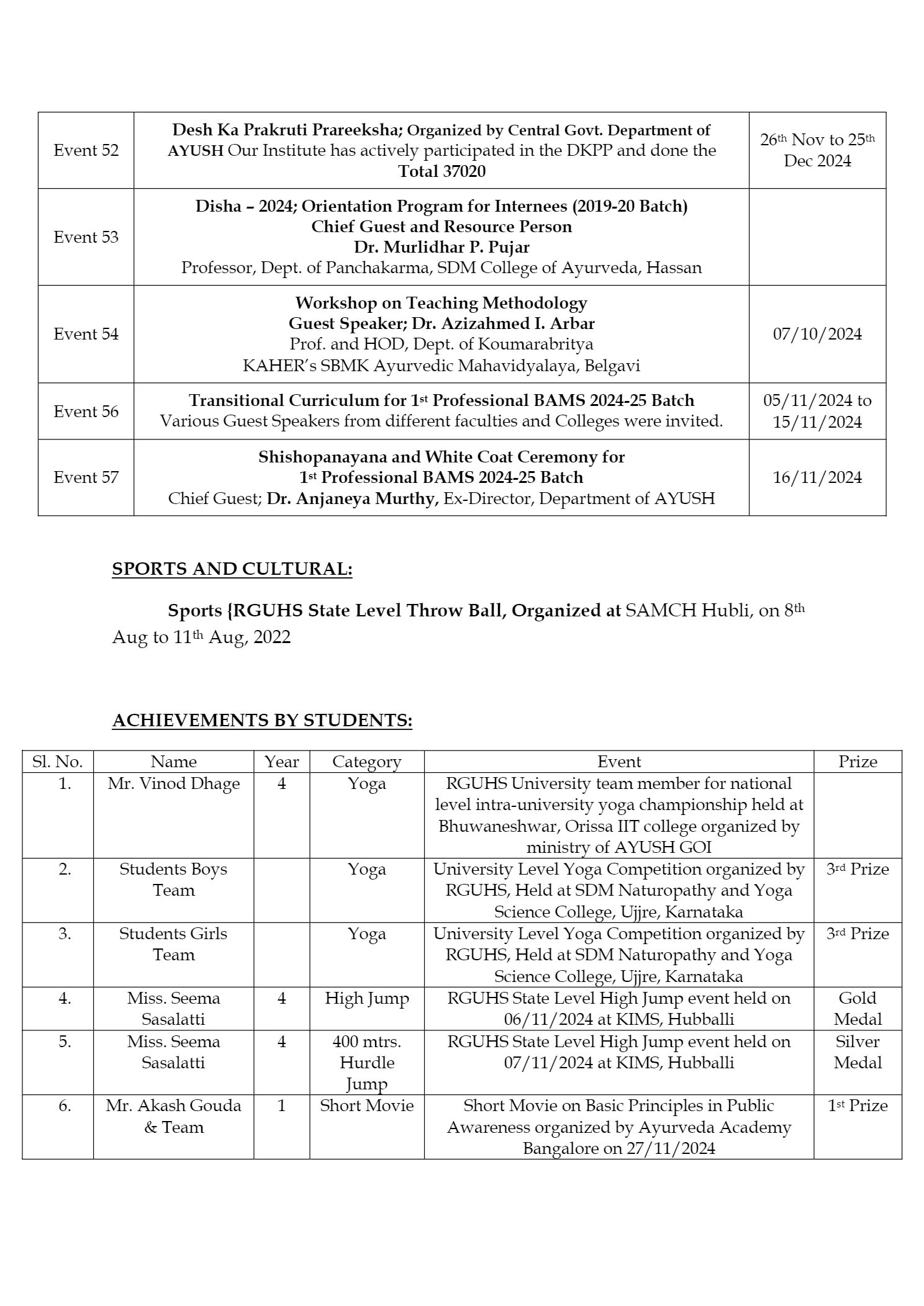 Orientation Training Program for I B.A.M.S. Students from 14th to 18th November 2018