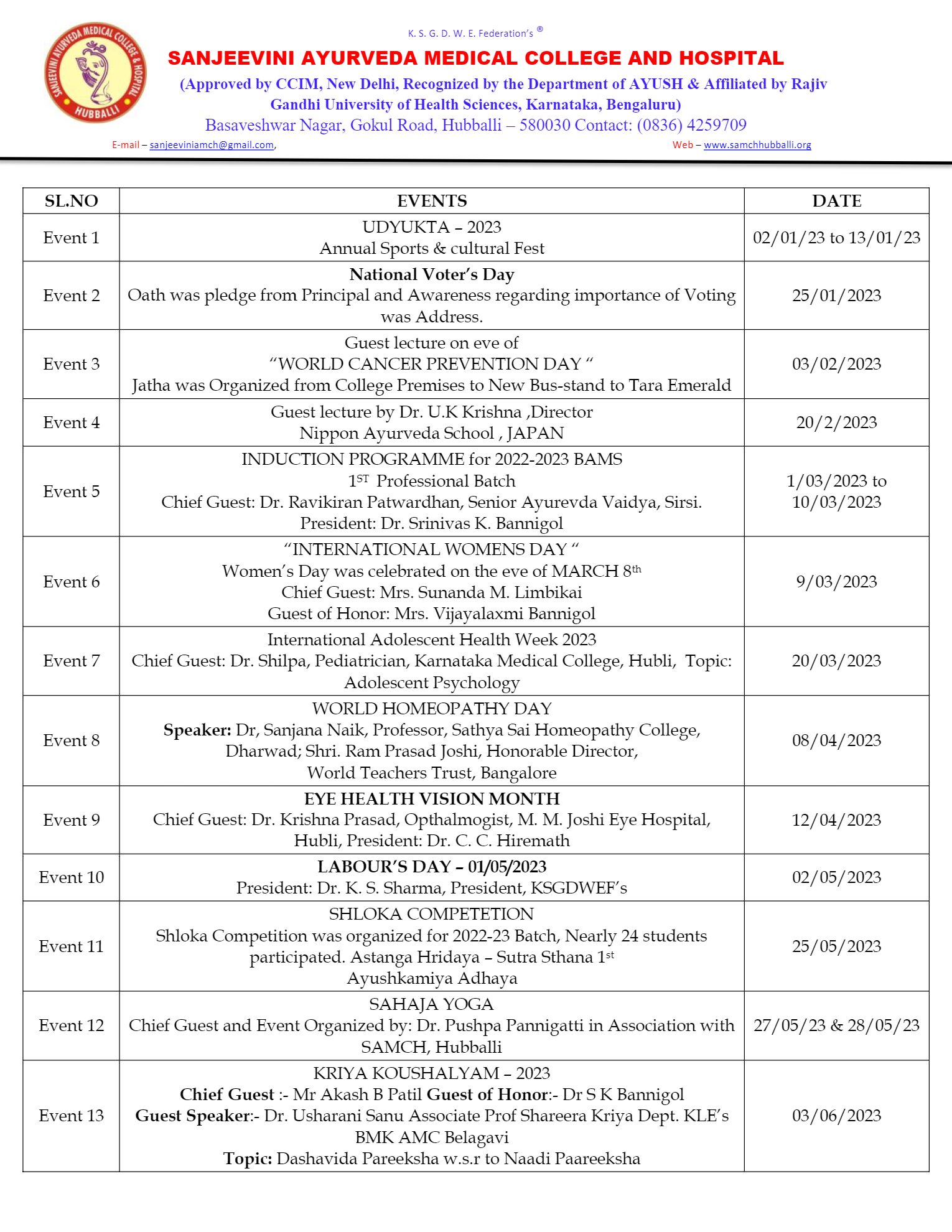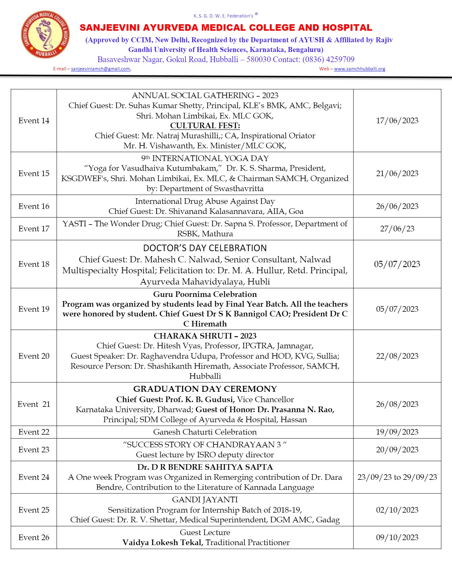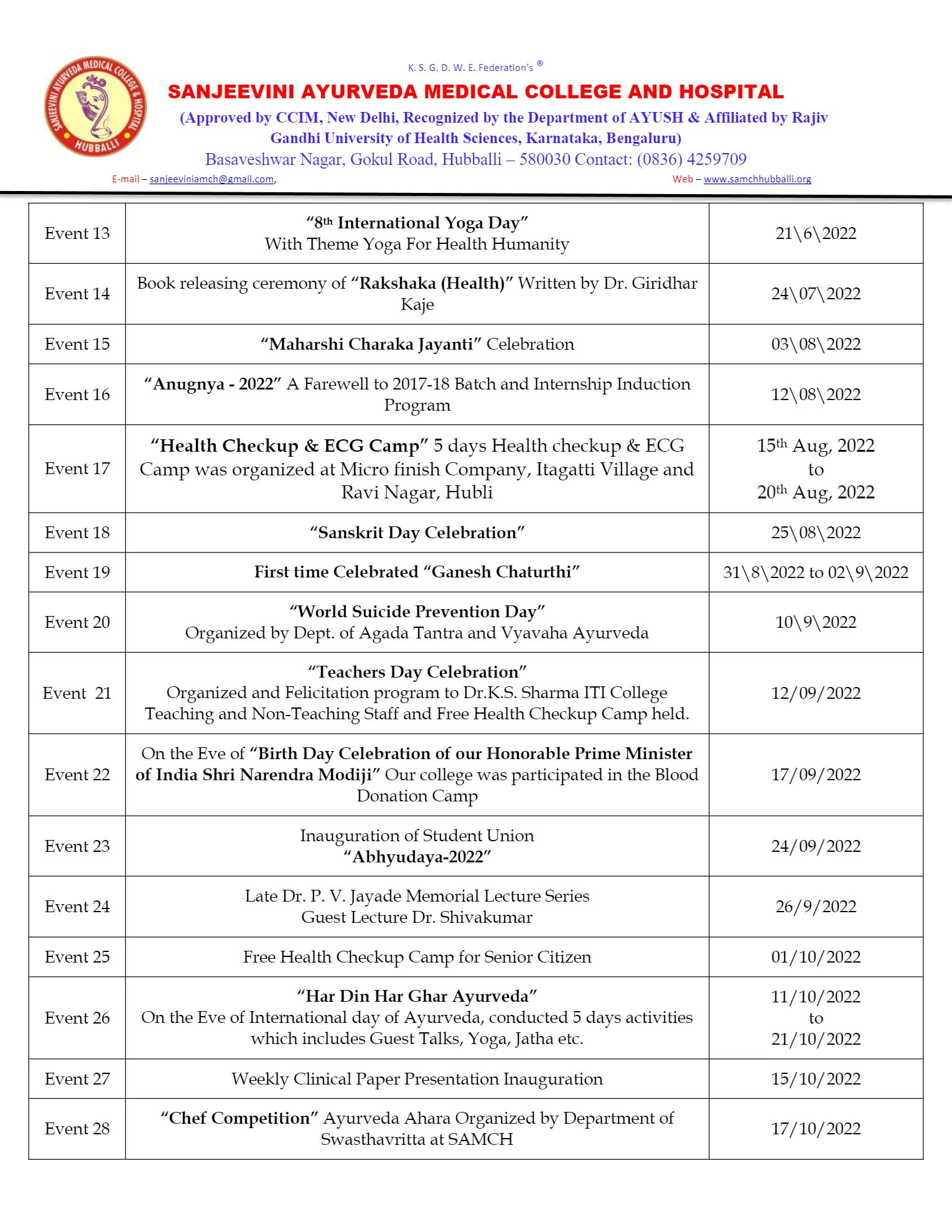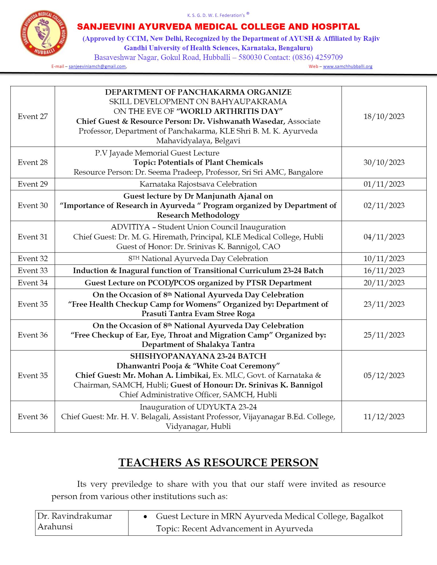 Swastya Masa at Bangalore from 3rd to 5 Dec 2018